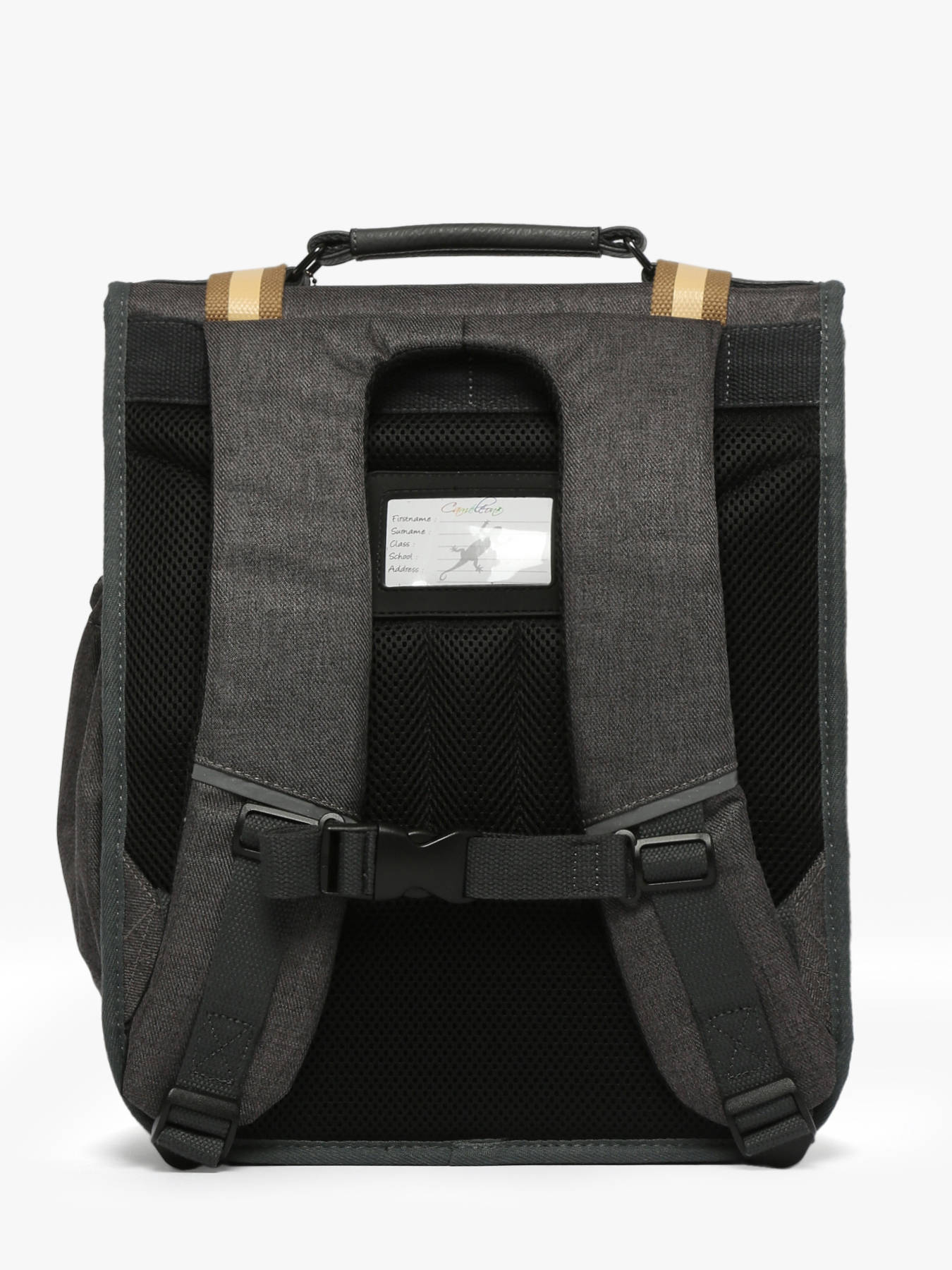 39 cm - 19 liters - 1.12 kg ~ 39 cm primary school backpack from the Vintage Urban line by Caméléon. We love this schoolbag with its updated design, ideal for smaller builds. It’s perfect for 1st and 2nd grade. The load is better distributed to reduce strain on children's backs. The two compartments can easily hold A4-sized notebooks. A dedicated slot for a ruler is included, and a side pocket is designed to carry a water bottle. For added comfort, the back and shoulder straps are padded, and the bottom is reinforced. For safety, the backpack features reflective strips. Made from waterproof recycled polyester.