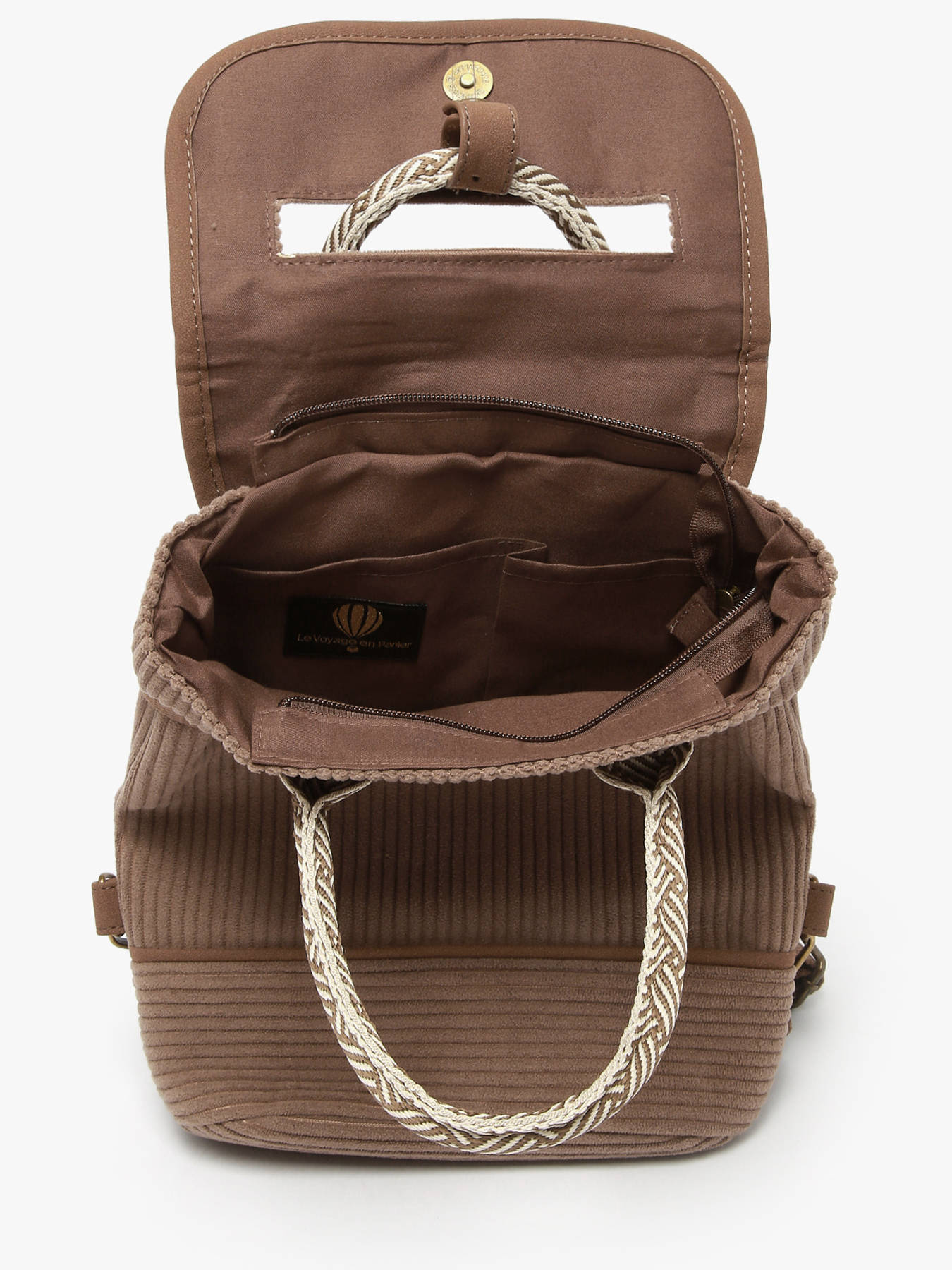Le voyage en panier Velours Backpack to carry wether in your hand wether on your back.