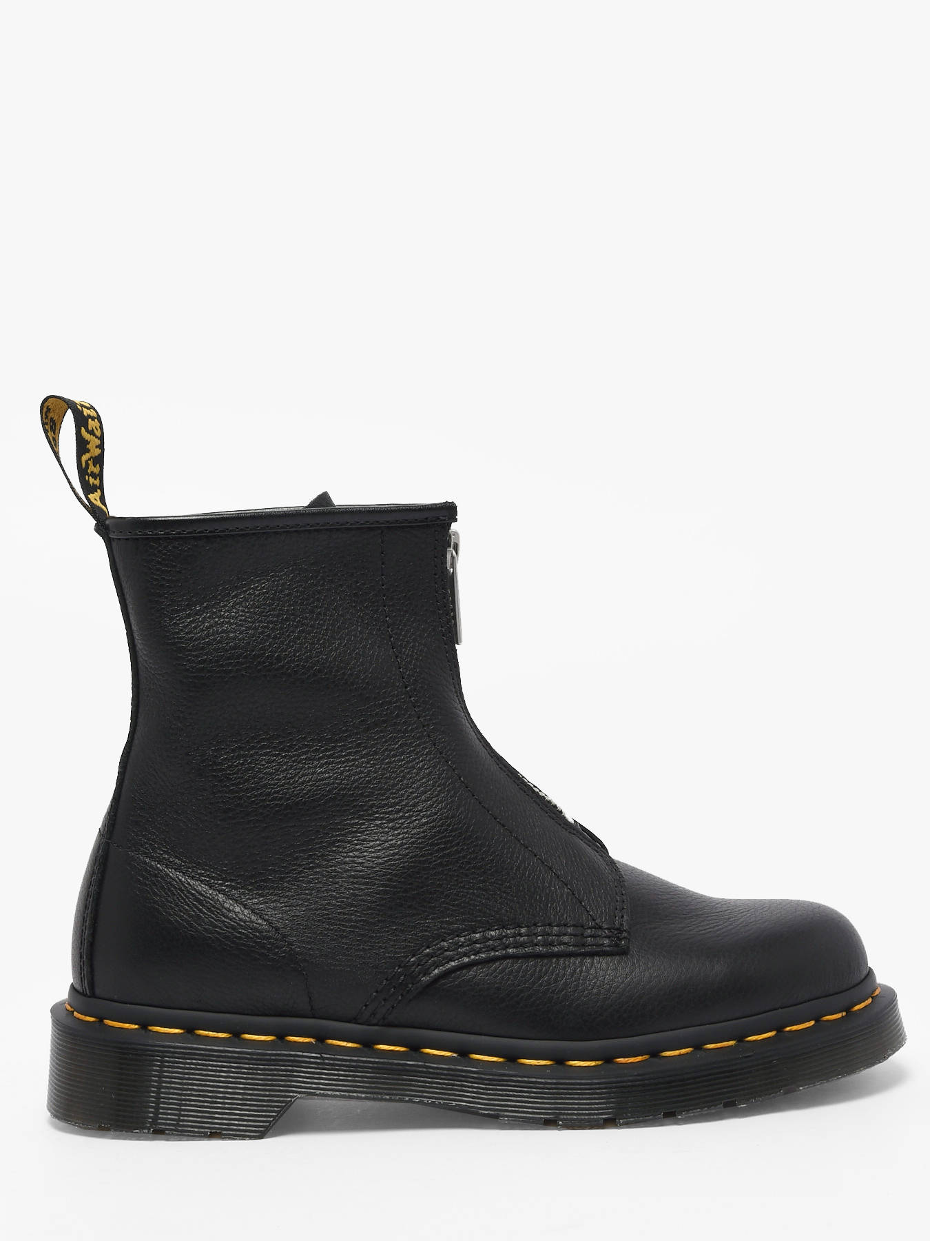 Les boots 1460 de Dr Martens en cuir Virginia noir réinventent une icône avec un twist contemporain et un confort optimal. Leur cuir doux au grain fin enveloppe le pied avec souplesse, tandis que les surpiqûres jaunes emblématiques et la boucle d’enfilage au talon célèbrent six décennies d’héritage Dr Martens. Le zip sur le devant remplace les lacets pour un enfilage facile et rapide, tout en conservant l’allure emblématique du modèle. Reposant sur la semelle Doc’s classique, solide et intemporelle, ces boots combinent robustesse et style iconique. Polyvalentes et audacieuses, elles deviennent un incontournable pour traverser la saison avec assurance, confort et l’identité rebelle et résolument rock de Dr Martens.