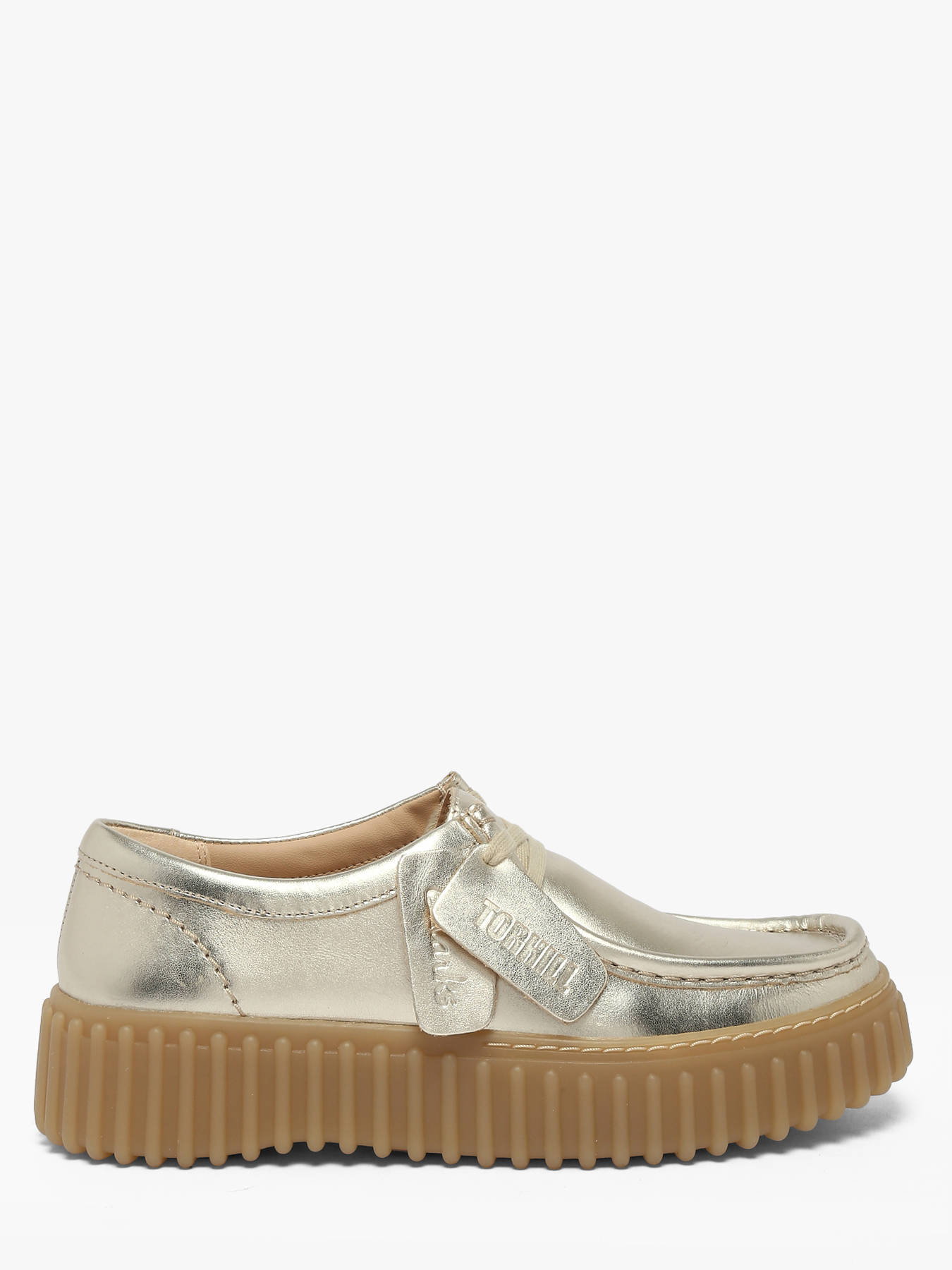 Les derbies Torhill Bee de Clarks pour femme en cuir doré illuminent vos silhouettes avec une touche audacieuse et contemporaine. Leur semelle extérieure épaisse et nervurée, directement issue des archives de la marque, affirme un caractère fort tout en restant résolument moderne. Le design épuré à lacets dessine des courbes harmonieuses pour une silhouette structurée et facile à porter au quotidien. Le cuir doré apporte éclat et originalité, transformant un modèle casual en véritable pièce mode. Confortables et stables, elles s’inscrivent dans l’héritage Clarks tout en revendiquant une esthétique tendance. Les Torhill Bee sont idéales pour celles qui souhaitent twister leurs looks avec une chaussure à la fois patrimoniale, lumineuse et pleine de personnalité.