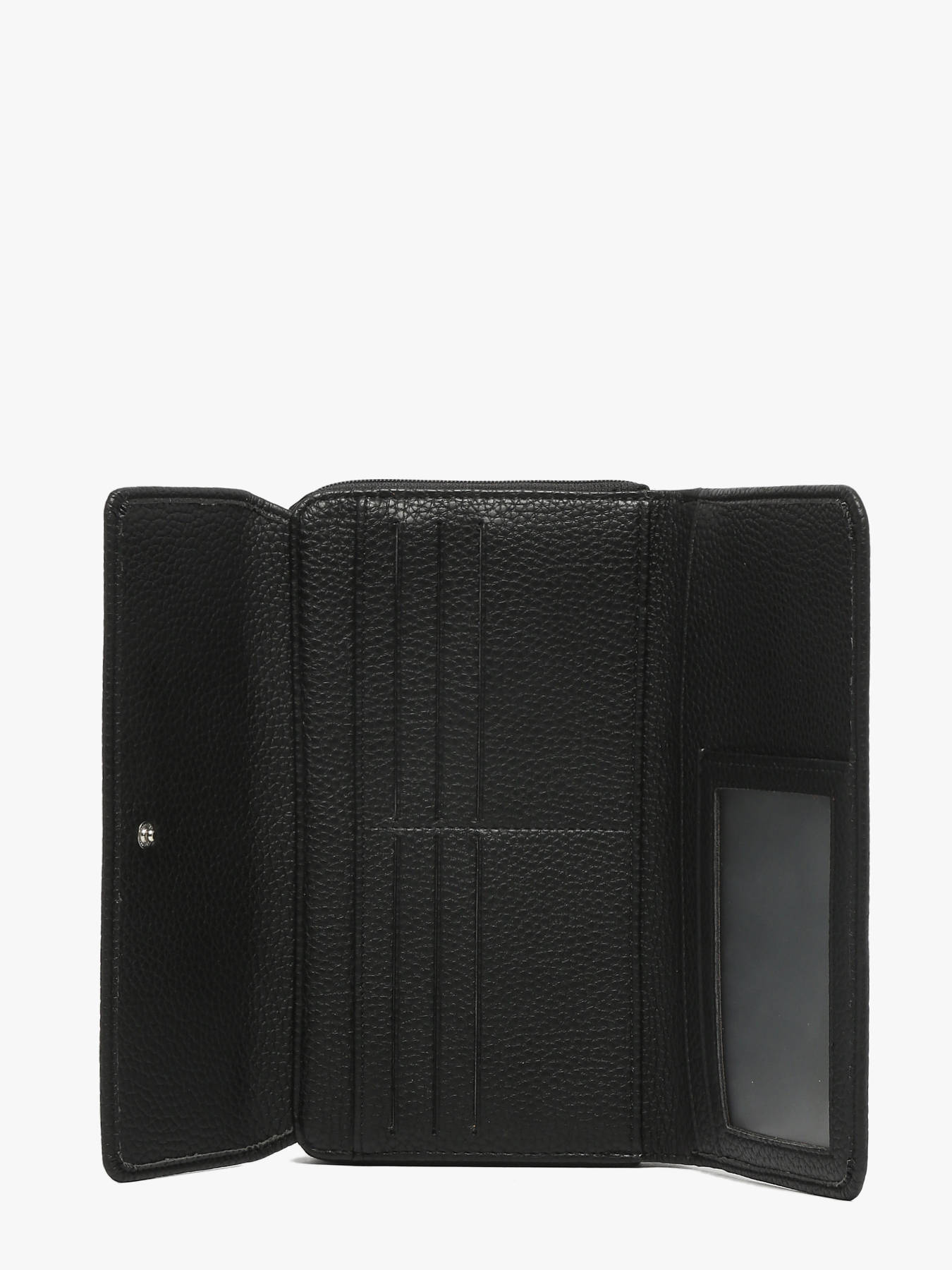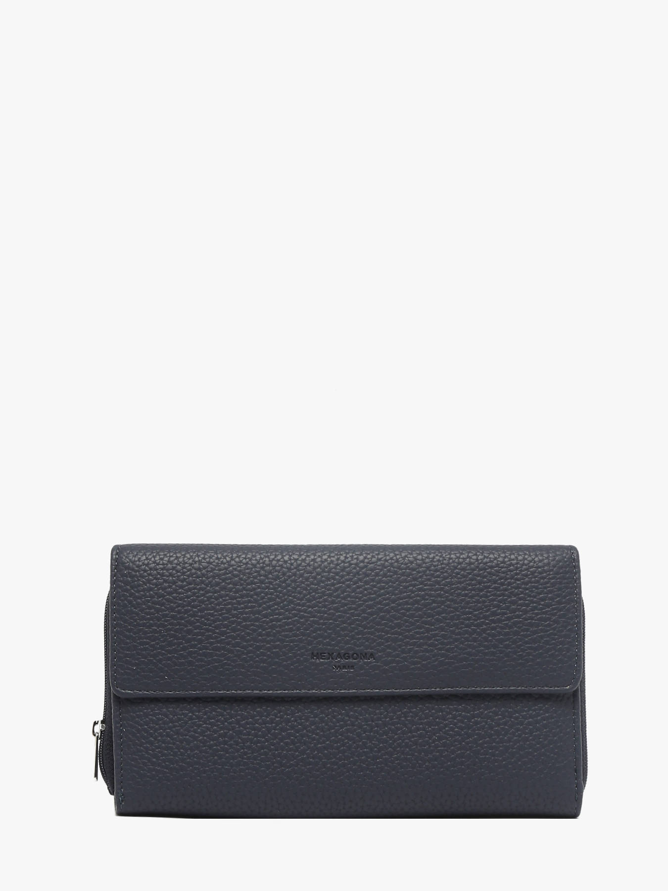 At Edisac, we offer you this Hexagona all-in-one from the ""Madrid"" line for its strong points: its grained synthetic material, its synthetic lining, its shiny gunmetal finish, its snap flap closure and its zipper closure. In addition, you should know that this piece also has inside a flap, a main compartment, a zipped wallet, six flat pockets (three of which have a transparent view), six card slots and a checkbook space. Finally, this accessory is compatible with credit cards, national identity card, driver's license, passport, car registration card and checkbook.