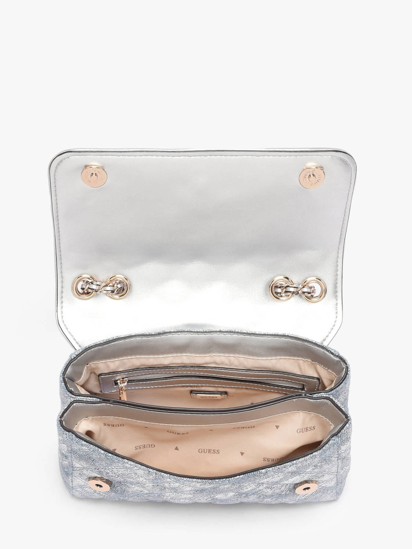 The GIULLY GUESS crossbody bag in synthetic-trimmed textile combines modern elegance with functionality. Its flap with magnetic closure keeps your belongings secure while allowing easy access to essentials. Inside, two main compartments, a zip pocket, and six card slots allow you to organize your personal items efficiently and stylishly. On the outside, a back pocket provides practical storage for your must-haves. With a 31 cm handle height and adjustable strap, it can be worn on the shoulder or crossbody, offering comfort and freedom of movement. Compact and structured, this bag suits both urban looks and more sophisticated outfits. Every detail reflects GUESS’s craftsmanship, making this piece a chic, practical, and modern accessory—perfect for those seeking style and organization every day.