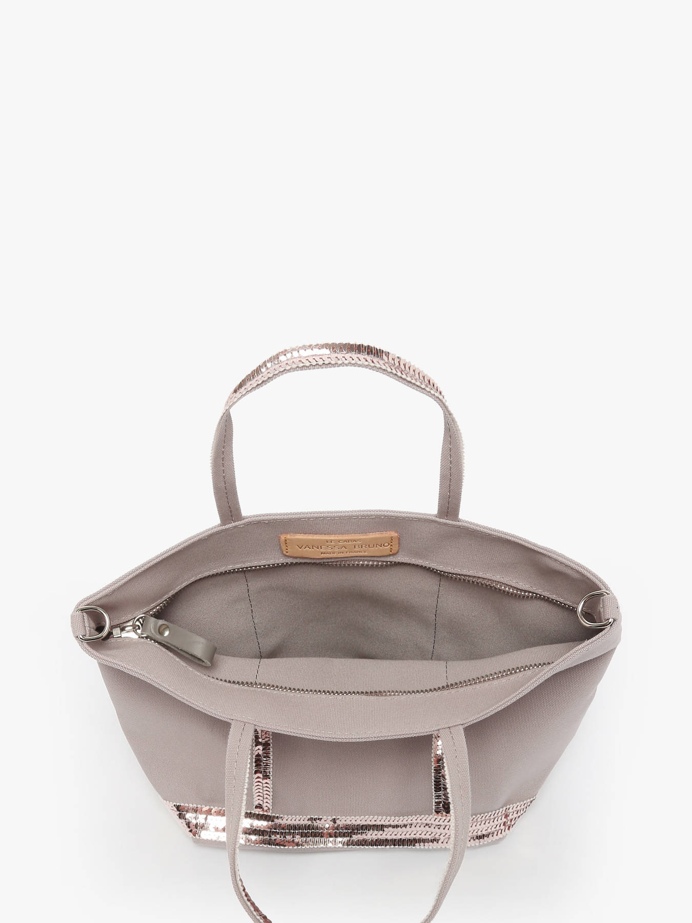 On adore ce sac à main Le Cabas signé Vanessa Bruno. Il est confectionné dans une toile de coton surmonté de paillettes, fabriqué en France dans les ateliers Vanessa Bruno près de Paris. Il s'agit d'une nouvelle taille de cabas, encore plus pratique et légère. Ces dimensions réduites ne vous permettront pas d'inclure beaucoup d'objets inutiles. Ce petit sac à main dispose de deux anses courtes et une bandoulière amovible pour un porté épaule ou croisé.