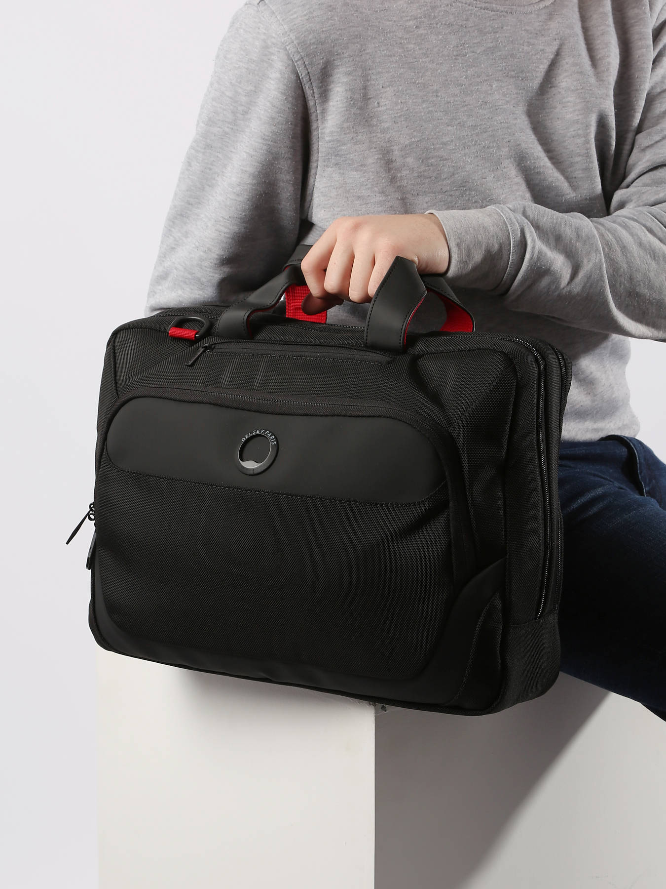 Porte-ordinateur deux compartiments de la ligne Parvis + de chez Delsey. Son premier compartiment dispose d'une poche renforcée pour ordinateur jusqu'à 16 pouces ainsi que deux poches simples. Le second compartiment sera parfait pour y ranger vos documents professionnels. Il est également doté d'une poche billets, pratique pour y glisser vos papiers et vos clés par exemple. Sa vaste poche frontale sur le devant et doté d'un organisateur avec de nombreux rangements, dont une poche renforcée pour tablette. Vous pourrez également le porter en bandoulière ou sur la poignée trolley de votre valise.