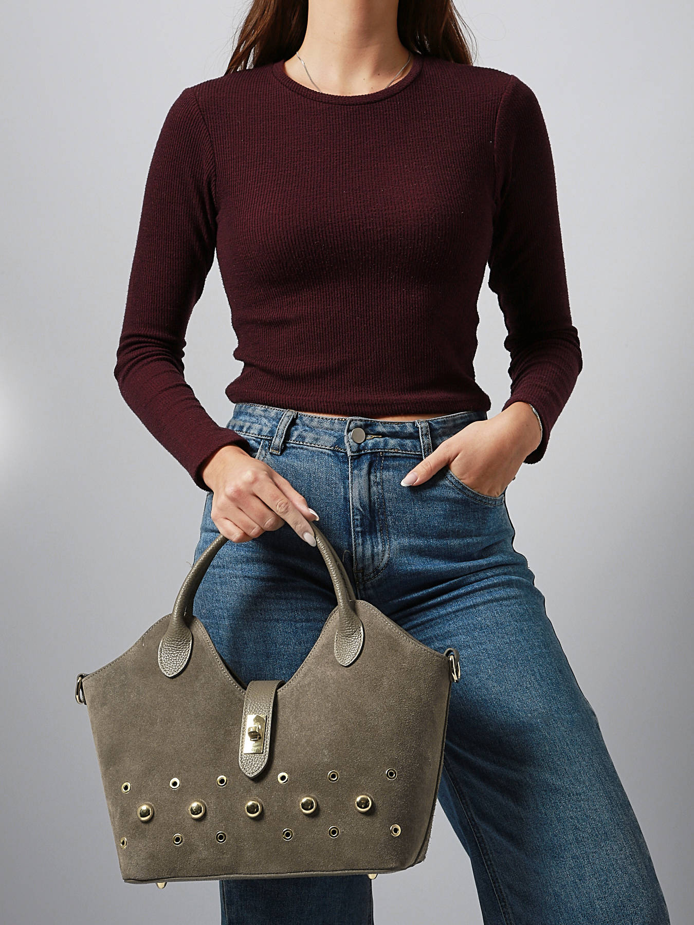 Le sac à main VELVET STUDS de MILANO, disponible en quatre coloris, allie style audacieux et élégance avec son cuir de vachette en daim. Son extérieur est doté d’une fermeture combinant rabat et fermoir, assurant sécurité et sophistication, tandis que sa hauteur d’anse de 17 cm permet un porté confortable à la main, à l’épaule ou en bandoulière grâce à sa bandoulière réglable et amovible. L’intérieur pratique comprend un compartiment principal et une poche zippée pour organiser vos essentiels avec efficacité. Compact mais fonctionnel, le sac à main VELVET STUDS de MILANO se distingue par son design raffiné et sa polyvalence, offrant un accessoire chic et moderne qui complète parfaitement toutes vos tenues, du quotidien aux occasions plus habillées.