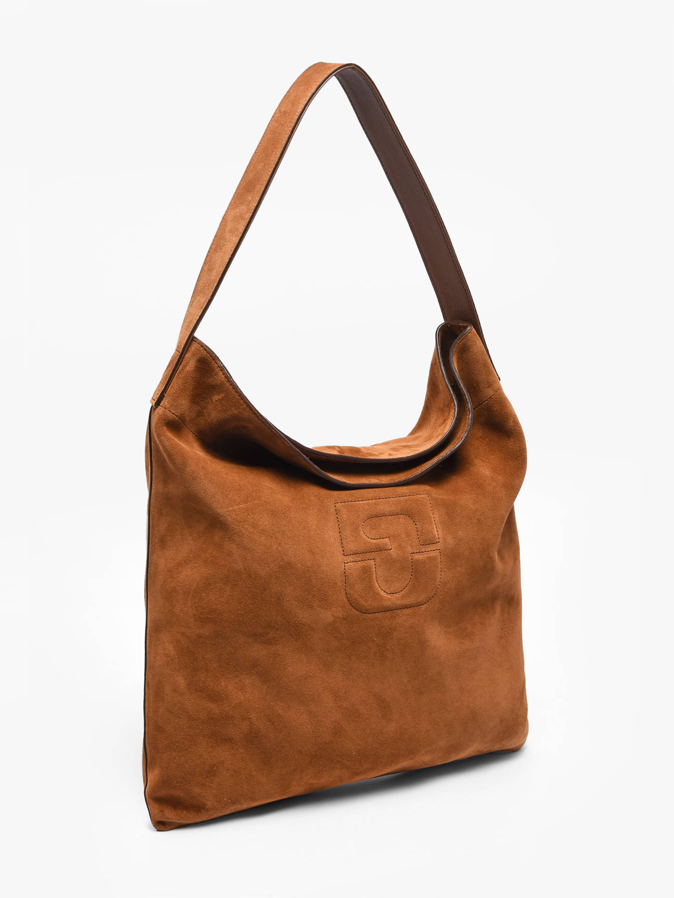 Sac porté épaule embossed emblem aspect daim