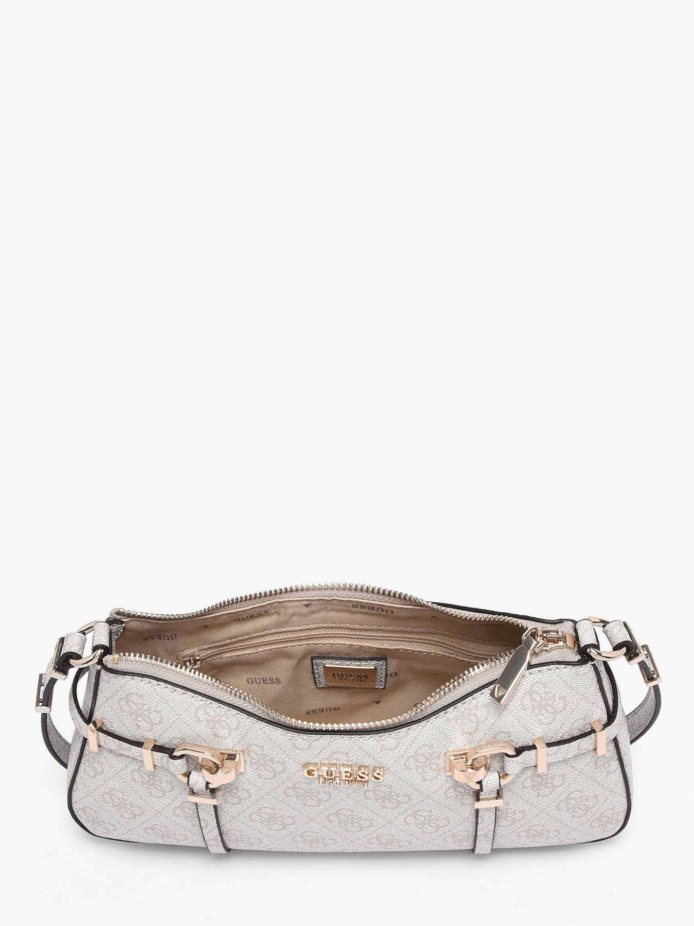 The DANYA GUESS shoulder bag combines contemporary elegance with practicality. Made from high-quality PU, it features a smooth, durable texture that is easy to maintain daily. Its zip closure keeps your belongings secure, while the back pocket provides quick access to essentials. Inside, one main compartment, a zip pocket, and three card slots offer organized storage for your essentials. The 30 cm handle height allows for comfortable shoulder wear while also being carried by hand for a more refined look. Compact and structured, this bag is perfect for any occasion, whether an urban outing or a more sophisticated ensemble. Every detail reflects GUESS’s craftsmanship, making this piece a chic, practical, and modern accessory, ideal for those seeking style and functionality every day.