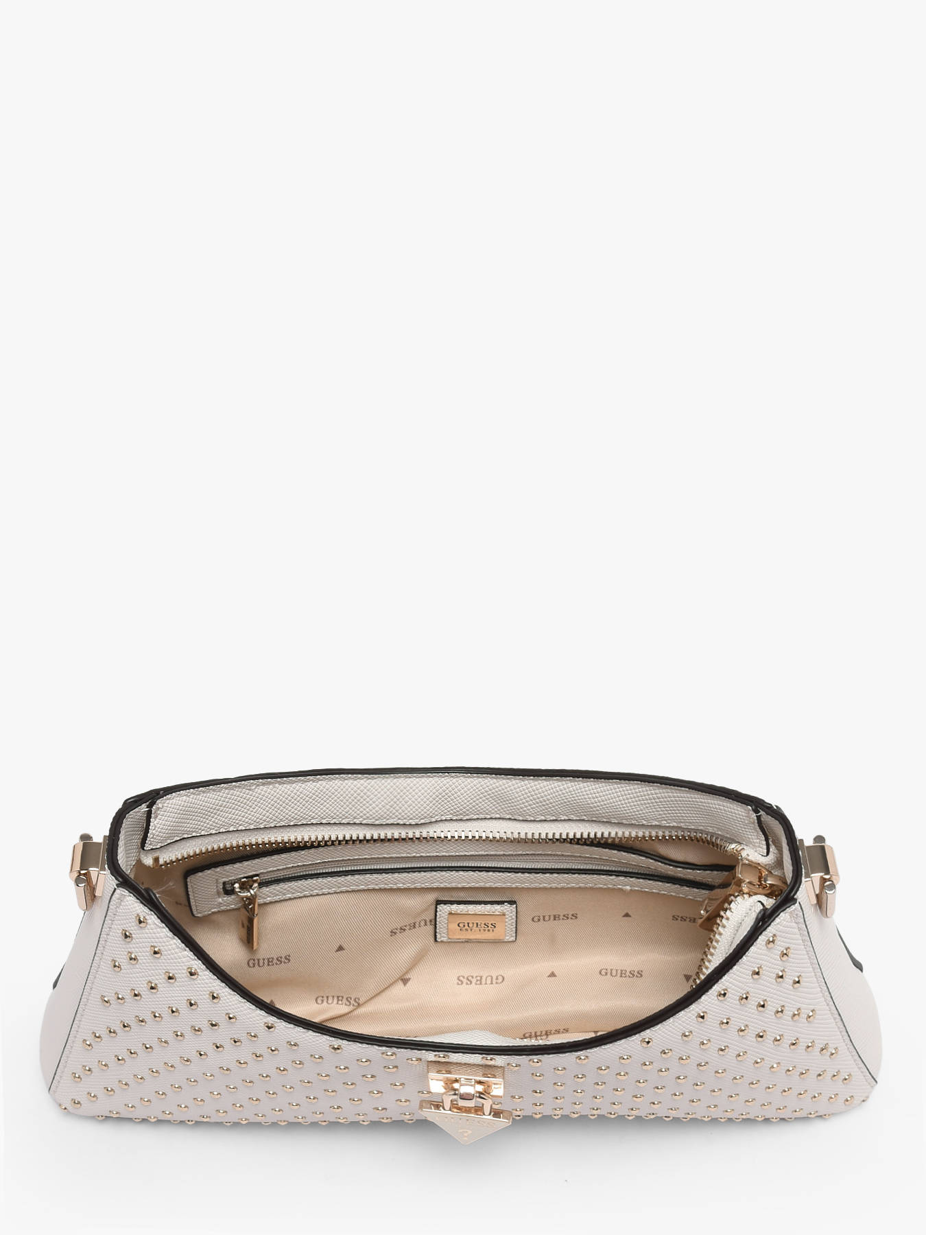 The PATSIE GUESS shoulder bag in PU combines contemporary elegance with functionality. Its zip closure keeps your belongings secure, while the interior features one main compartment, a zip pocket, and six card slots, providing organized storage for all your essentials. On the outside, a back pocket offers quick access to daily must-haves. With a 28 cm handle height, it can be comfortably worn on the shoulder, combining practicality and style. Compact and structured, this bag suits both urban and more sophisticated looks, adding a chic and modern touch to any outfit. Every detail, from the refined finishes to the quality PU material, reflects GUESS’s craftsmanship, making this bag a practical, stylish, and trendy accessory—perfect for those seeking style and organization every day.