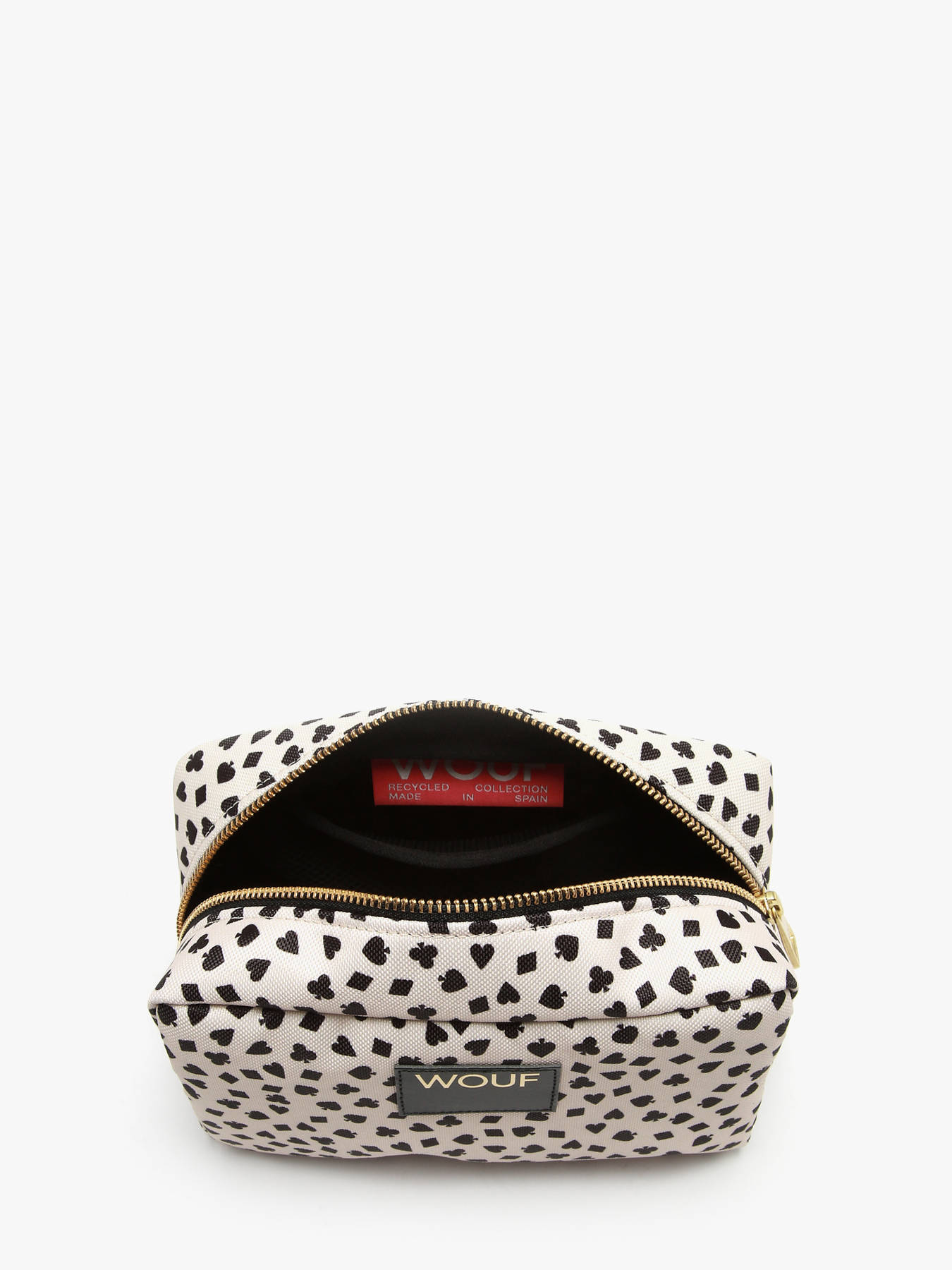 La trousse de toilette LUCKY de la marque WOUF allie praticité et design original pour vos déplacements quotidiens ou vos voyages. Conçue en polyester recyclé, elle combine durabilité et légèreté tout en affichant un engagement écologique. Son imprimé inspiré des jeux de cartes avec carrés, trèfles, cœurs et piques apporte une touche ludique et moderne à vos accessoires. La fermeture zippée sécurise vos effets personnels et facilite l’accès à vos essentiels. À l’intérieur, un compartiment principal et une poche simple offrent un rangement organisé pour vos produits de toilette ou accessoires personnels. Polyvalente et stylée, la trousse de toilette LUCKY WOUF allie esthétique originale, fonctionnalité et praticité au quotidien.