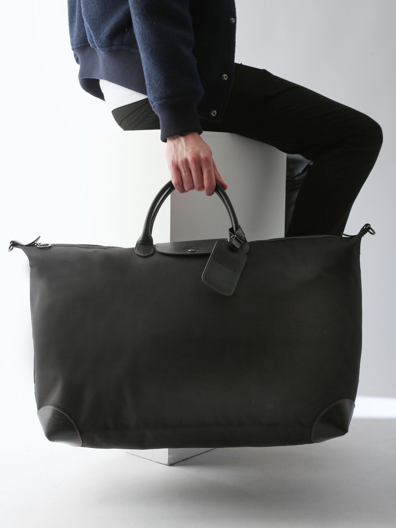 The Boxford travel bag from Longchamp, crafted from polyester trimmed with leather, epitomizes discreet elegance. Designed for use as cabin luggage, it features a removable shoulder strap for versatile carrying options - either over the shoulder or by hand, making it ideal for various travel scenarios. Longchamp's iconic Boxford line is characterized by its understated yet distinctive style. Bags for men, business bags, and luggage in this collection proudly display the Longchamp rectangular logo embossed in leather, complemented by contrasting stitching that highlights the refined elegance of each piece. Made with dual-tone canvas and trimmed with Russian leather, the Boxford bag offers a luxurious, textured relief effect, showcasing the craftsmanship synonymous with Longchamp. Perfect for a weekend getaway, this travel bag includes a flat pocket inside for convenient organization of your essentials. Whether for a business trip or a personal retreat, the Boxford bag combines functionality and aesthetics, meeting the needs of modern travelers seeking elegance and practicality.